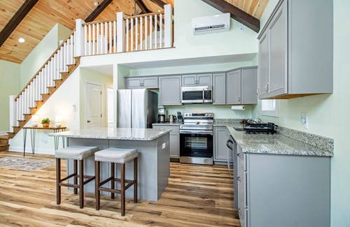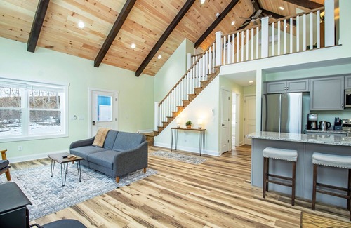 Nestled in the forests of Elkton, VA, Mountain Creek Cabin offers a modern open-concept design with vaulted ceilings, exposed beams, and expansive windows that showcase stunning woodland views. Whether you're looking for relaxation or adventure, this stylish yet rustic retreat offers the best of both worlds.