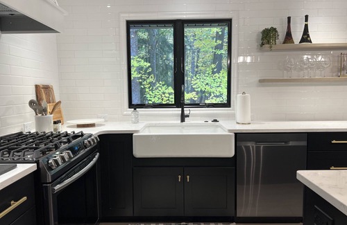Newly renovated home with grilling deck and fire pit. 600 foot walk to the beach. Brand new Kohler bathrooms, electric fireplace and spacious kitchen with huge center island. A light-filled home in the woods with large windows allowing glimpses of deer, fox and eagles.