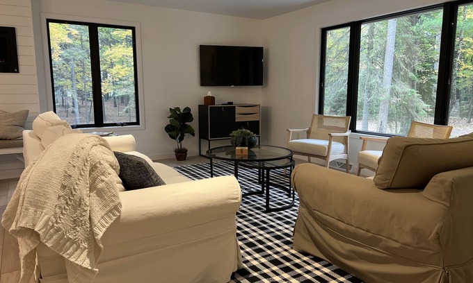 Modern Cabin, private wooded lot with lake access | House in Sheboygan