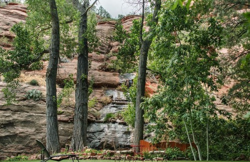 - Stunning Natural Setting: Experience the beauty of Oak Creek Canyon with lush greenery, flowing mature trees, and a captivating waterfall that creates a romantic ambiance.