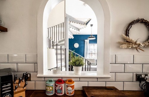 Set back off a small residential road, there is very little traffic or passers by. Decorated with a combination of rich colours and neutrals to provide a warm welcoming feel and enhance the character of the property. In the open living space, there is a stunning spiral staircase, peep through arches in the kitchen and original sash windows making it stand out from your average home. The sofa is large enough for 3 to sit comfortably and there is room at the dining table for 5 people to eat. The kitchen has everything you need to whip up an evening meal, and the open plan layout makes it ideal for entertaining.