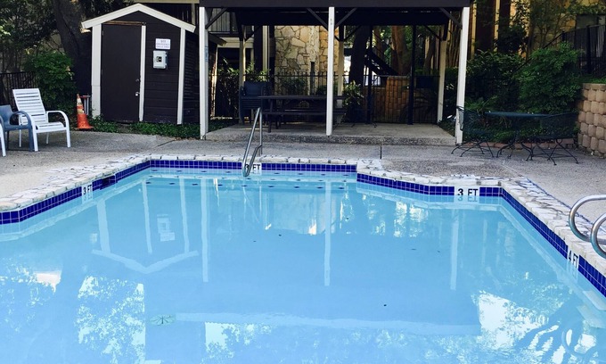 You will have the basic amenities included here and access to the beautiful blue pool just steps away from our back patio! The sun is hot, the water is cool; so feel free to enjoy the pool! If you can't handle the hot Texas sun, get ready to jump in. Don't forget your swimsuit!