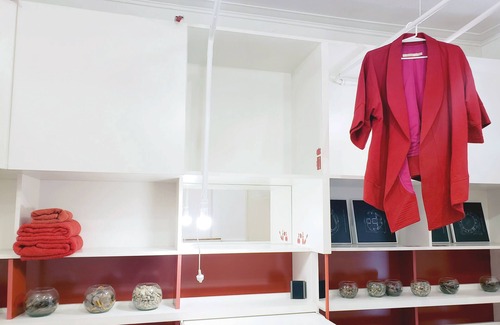 The apartment has a full bathroom with natural sunlight, and a kitchen with everything necessary to cook delicious dishes. It has a laundry machine and hanging cords for wet clothing.