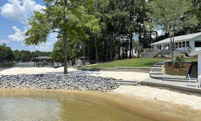 This gorgeous waterfront home on the point is nestled on the shores of Lake Wylie in Charlotte, NC. It's one of the rare properties on the lake with its’ own sprawling private sandy beach - ideal for young children, families, or couples to enjoy.