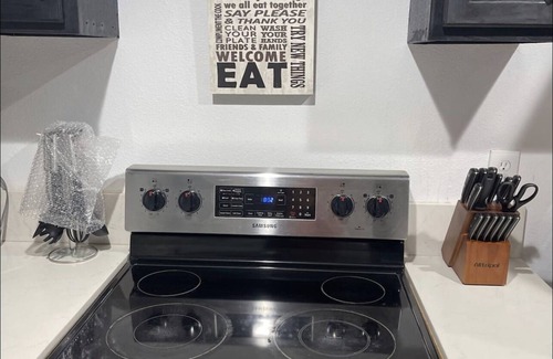 Alexa device is also available. Please take well care of her since she can be a great help for you during your stay; for example, you can ask Alexa the weather, the time, to play music, what are the restaurants nearby, how far is Disneyland, etc. Or you just can turn her off by pressing the on/off switch.