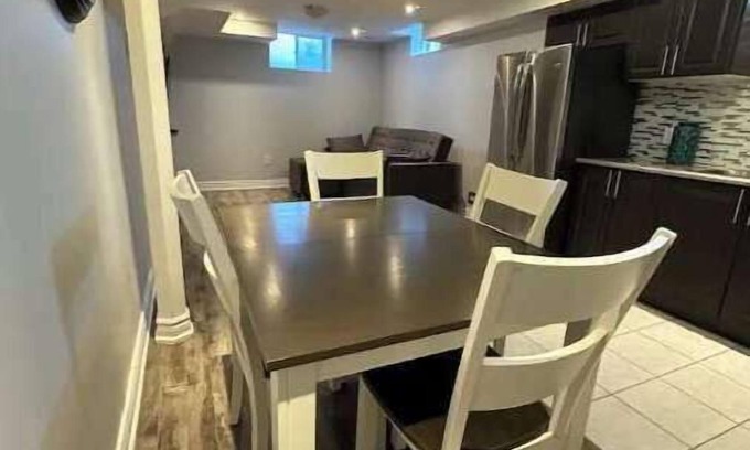 Enjoy Your stay at this Beautiful Modern Clean 2 bedroom basement apartment with Private Separate entrance from the main house.1st bedroom has a queen bed and 2nd bedroom has a twin bed. Full kitchen with fridge, Gas stove, Microwave, toaster, cookware. Washer/dryer, Bell FIBE Internet,Smart TV, IPTV with 1000 Channels. Even a Tesla charging station for your Electric Tesla/ EV Charger Available . Steps to public Transit and Park & Close to all amenties.