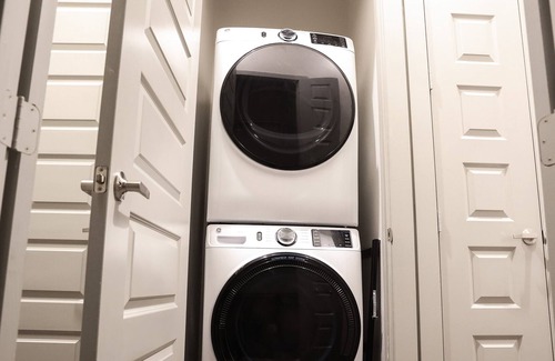 Enjoy complimentary 1000 MBPS Wifi to tackle that project or stream Netflix or Hulu or HBO on the 2 75'' flat screen TVs. The bedroom holds a queen size bed and couch has a pull out full size bed when you're ready to settle in for the night, and the kitchen is full equipped to help prepare any meal on the spot. Feel at home with the comfort of conveniences such as a washer and dryer and a patio for relaxation.