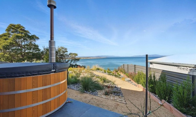 Perched above Connellys Marsh, this brand-new modern retreat boasts four bedrooms, stunning views, and expansive indoor-outdoor living. Featuring a woodfire-heated hot tub, putting green, and multiple sun-soaked decks, it’s the perfect blend of luxury and nature. Enjoy a spacious open-plan layout, huge steel kitchen bench, fire for ambience, and a cosy upstairs lounge. A perfect base to unwind and explore Tasmania’s stunning southeast coast.