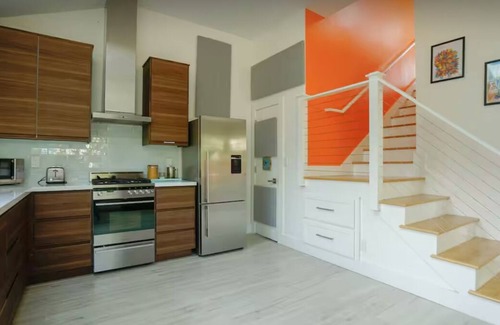 Newly built contemporary two-story apartment in a safe, quiet neighborhood—just a 5-minute walk to the beach and bluff-top coastal trail, and a 10-minute walk to downtown and the farmers market.