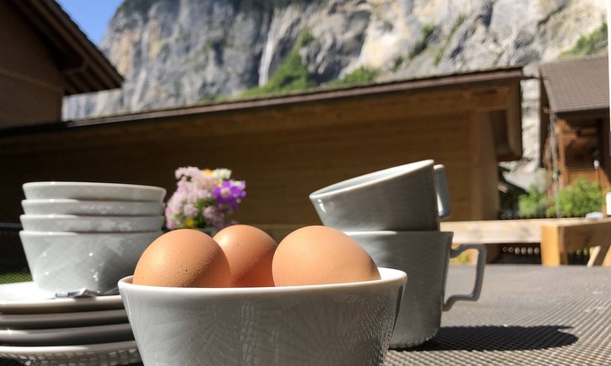 You will love our apartment in Lauterbrunnen ! You'll appreciate the well equipped kitchen and personal design of the space that'll make you feel cozy, comfortable and at home. Our super comfortable one bedroom, ground floor, apartment has everything you need including high quality bedding and soft towels and a large, covered ground floor terrace with a view of the famous Staubach falls.