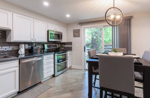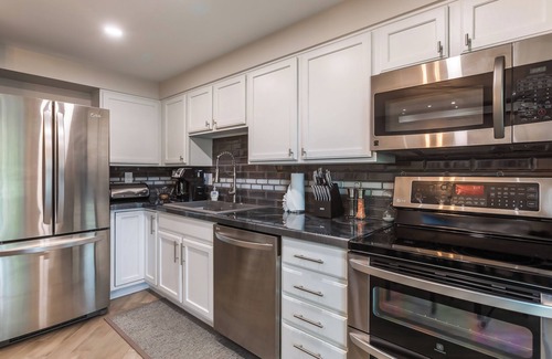 Relax in the inviting living room with a 65" 4k Smart TV and a cozy fireplace. The well-appointed kitchen and private back patio provide options for dining, and exceptional restaurants are within walking distance.