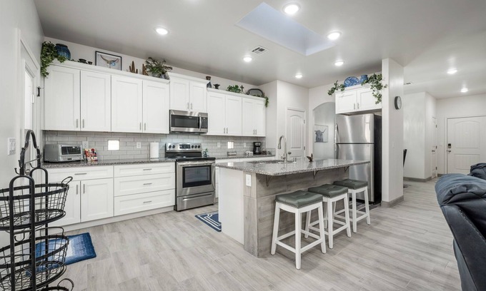 Modern Comfort - Townhome near NMSU, Las Cruces Convention Center & Mesilla has 3 Bedrooms , 2 Bathrooms, and max occupancy of 8 people. The minimum rental for this property is 1 nights, but this can change depending on the season you plan on staying. Previous guests have given good rated it, and VRBO labeled it a top-rated House because of the excellent services rendered by the owner or manager of this House, and has consistently provided great experiences for their guests. Most families or guests that use it recommend it to their friends and some of them are repeat guests. House has a friendly neighborhood, and the Mesilla Park has interesting places to visit. If you want to learn more about the House in Mesilla Park, such as places to visit and things to do nearby, you can check below to learn more.
