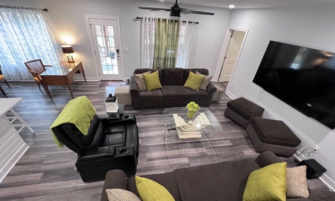 Centrally located near Winston-Salem in, this NEW construction 2-bedroom, 1.5 bath basement apartment has it all, including an 86" Smart TV and every amenity you will need. Perfect for families, business travelers, traveling nurses, and friend groups. Unwind on the patio, gather in the large great room with the spacious floor plan, prepare meals in the well-equipped kitchen, all while enjoying comfort and style. You’ll be impressed with all the details to make your stay very comfortable!