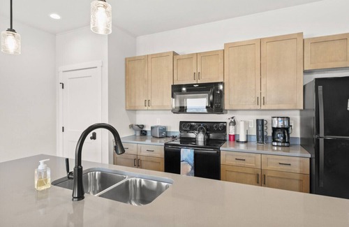 The Caboose is a lavish two-bedroom, two-bathroom condo, complete with a fully equipped kitchen, laundry room, and lots of windows with a great view of the district.