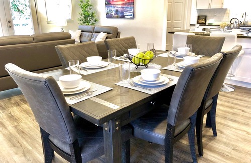 Welcome to Haralson! This beautiful 3-bedroom ranch-style fully furnished home comfortably sleeps 8 guests in 4 beds (total of 6 separate mattresses) with 2 full bathrooms. Enjoy the comfortable open-concept living and dining area, with an open full kitchen including modern appliances; relax in the hot tub and have a nice barbecaue in the private backyard oasis or have a summer blast in the pool — the ideal retreat for a peaceful escape!