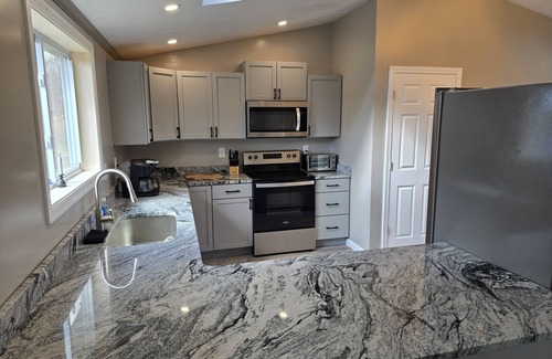Escape to the tranquil town of Cornville, Maine and indulge in the comfort and luxury of our newly renovated ranch house, the perfect getaway for families, couples and traveling professionals. Featuring a brand new kitchen, all brand new furniture, Primary suite with King size bed, 2 closets, and private bathroom with huge walk in shower. The second bedroom has a large closet and 2 full size beds. New heating system to keep you comfortable in our Maine winters, high speed internet and TVs in the living room and both bedrooms! Located 10 minutes to Skowhegan, close to ATV and snowmobile trails, 1 hour to Sugarloaf ski resort, and an hour to Greenville and Moosehead Lake!