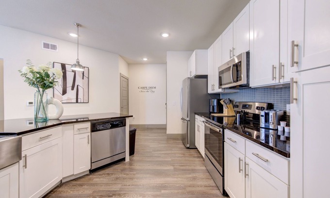 Spacious modern getaway instantly booked-up on roll out! Access to apartment home amenities & activities, in-unit washer/dryer, high speed Wi-Fi, lux amenities, and concierge service. Property located near The Woodlands Mall, Market Street, walk-to restaurants, nearby food parks, movie theater, HEB, Target, salon/spa, and Cynthia Woods Mitchell Pavilion. Also a short drive to The Woodlands/Conroe area hospitals. If you love outdoors it's a short drive to Lake Conroe for fishing & watersports!