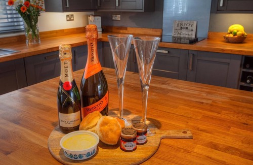 Our lovely converted bungalow has an open plan kitchen/lounge/dining room area with Wood-burner and patio doors to the garden. The kitchen is fitted with a dishwasher, fridge-freezer, hob, oven, combi microwave/oven and coffee machine. Use of 59" TV & Wifi is included.