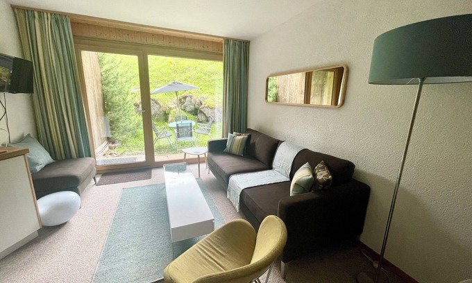 Situated on the upper ground floor of Mont Fort residence, the apartment has an open plan lounge, dining area, a fully equipped kitchen and bathroom with bath/shower. There’s even your own small garden to enjoy.