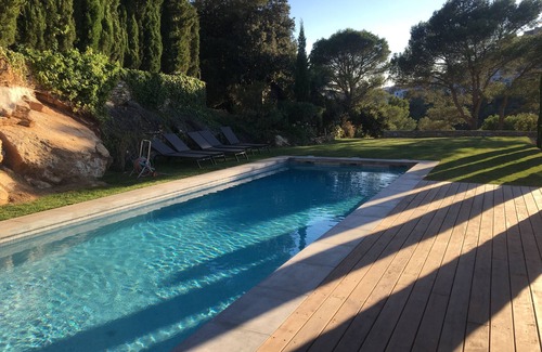 It is surrounded by a large garden, 4 terraces and a private swimming-pool.