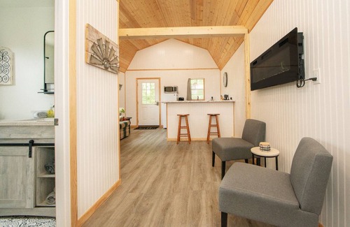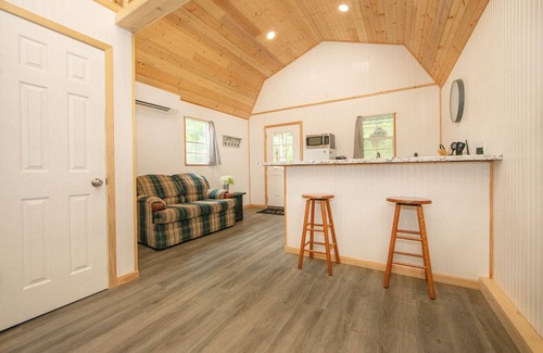 Welcome to the Railway Lodge, The Cottage is the most recent cabin we’ve added to our large spacious area, we now have 2 cabins close but still very private away. So if your looking to add more guests we also have The Cabin which sleeps 4. The area is secluded yet close to fun attractions. The property is right next to bloody run trout stream so bring your fishing pole and experience the great fishing in the beautiful area. Newly built recently is our pond. We do provide 2 kayaks and a paddle boat on site. The pond is private but is shared with the other cabin guests. The large yard area gives you plenty of room to explore. We do have charcoal grill on site but you need to provide charcoal. We are right next to Spook Cave so definitely a must to take a cave tour! Don’t be alarmed with the trains that come by it actually is pretty cool at night with the lights “ Railway Lodge”