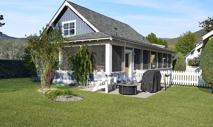 Welcome to Shenanigan Hideout- a modern cottage on Lake Osoyoos! Our vacation rental is steps away from sunny Verana beach, pool/hot tub, diner, and playground. Enjoy stunning access to the lake from our 50's theme community and spend cozy nights around the fire pit. The cottage features a beautifully updated interior with comfortable furnishings, a fully equipped kitchen, and a charming Veranda for afternoon relaxing or watching lawn games in the expansive community green space. Cheers!