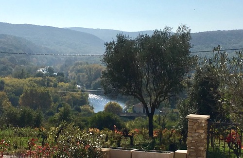 LOCATION: small & quiet hamlet with specular views across the Cèze Valley to La Roque sur Cèze medieval village. The Cèze river itself is also visible from the pool. The cottage is 25min from the Bollène A7 motorway exit. A supermarket (Intermarché) is at 3km and the pretty town of Goudargues, with its restaurants dotted along a canal, is at 4.5km. The Cascades du Sautadet (natural rock pools and water falls) are at 4km.