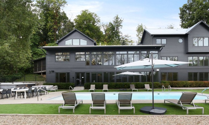 Your search for the ideal wedding accommodation ends at the Modern Country Home with Pool, Hot Tubs & Fire Pit. Nestled on over 10 acres of picturesque landscapes in Berrien Springs, Michigan, this stunning property provides a breathtaking backdrop for your special day. With ample space for guests and luxurious amenities, you can celebrate your love surrounded by the natural beauty of Southwest Michigan's wine country, making it an unforgettable experience for everyone involved.