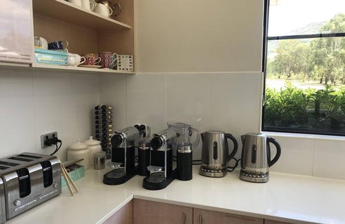 2 coffee machines, 2 kettles, 2 coffee plungers and 2 four slice toasters makes cooking breakfast for 16 a breeze. A generous supply of coffee pods and a good selection of tea is provided.