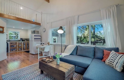 Conveniently located blocks from I-5 & Hwy 99, the loft is nestled among old-growth douglas fir trees in a quiet neighborhood. This home away from home feels like one foot in the city and one foot in the forest. Fast wifi, kitchen, easy parking, heating & air conditioning. Tuck in to the cozy retreat and take a relaxing bath or unwind by the patio fire while watching the chickens peck away in their run. Guests of all backgrounds are welcome in this home.
