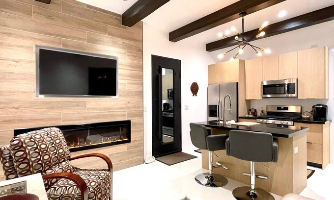 Modern desert casita surrounded by Mountain View’s Trails galore! is located in Rio Verde Foothills. Modern desert casita surrounded by Mountain View’s Trails galore! provides accommodation, featuring TV, Balcony/Terrace, Fireplace/Heating, among other amenities. This Apartment features TV, Balcony/Terrace, Fireplace/Heating, to make your stay a comfortable one.