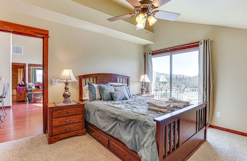 This charming condo features two inviting bedrooms with queen beds, making it ideal for wedding parties or family members. Enjoy modern conveniences such as a fully stocked kitchen, free WiFi, and flat-screen TVs. Step outside to the private deck where you can soak in the picturesque surroundings while dining al fresco or unwinding under the stars. The property showcases rustic decor along with floor-to-ceiling windows that fill the space with natural light. For those seeking relaxation, an on-site masseuse is available for soothing massages to pamper yourself before the big event.