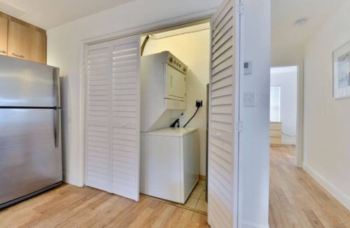 Additional amenities include a patio with a barbecue and jacuzzi to enjoy the great Miami outdoors, this area is shared with unit A. Washer and dryer, WiFi, cable, white linens, towels, cook-wear, appliances etc... are all provided. Free parking in the driveway fits one car and any additional vehicles may parallel park on the street. We ensure that the house is absolutely immaculate before renting it to our guests! Here you will be 15 minutes away from iconic South Beach and 10 minutes away from bustling Brickell.