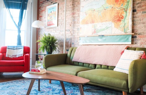 Step inside to find a beautifully renovated space just a 2 minute walk from Seneca lake. Outfitted with contemporary furnishings, hardwood floors, exposed brick and flooded with natural light. The open-concept layout creates a welcoming atmosphere for gatherings and relaxation. Centrally located, this downtown loft serves as the perfect home base to explore all that Geneva has to offer. After a day of wine tasting or lake exploration, unwind and recharge in the comfort of your spacious retreat.