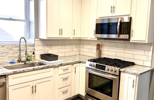 This is a stunning second floor duplex unit in desirable University City. (please note 28 day rental min due to local regulations). It was fully renovated in 2019 and has modern high-end furnishings. This is not your typical Ikea furnished rental, this is a carefully curated, thoughtful space, complete with small details for the decerning renter. Whether you are a corporate exec, traveling nurse, or visiting professor, this will suit your needs. This property is currently set up with a single bedroom and large office, but can be converted to a two bedroom if desired. It's ideal for a working professional, traveling nurse, or visiting professor. The space is quiet and completely private. You will enjoy a new smart TV, gas range for cooking, large walk-in closet and in-unit laundry. We have taken great care to make sure this does not feel like a typical cookie cutter rental and more like a modern home. it's suited for a cook, someone who would enjoy a bit of workout space, and those who might have a shoe addiction! Unit comes equipped with everything, linens, towels, dishes, even starter bathroom and kitchen products- all you need are your clothes. Additional basement storage is also available upon request. Management is local and a person, not a company, available to help with any questions or needs.