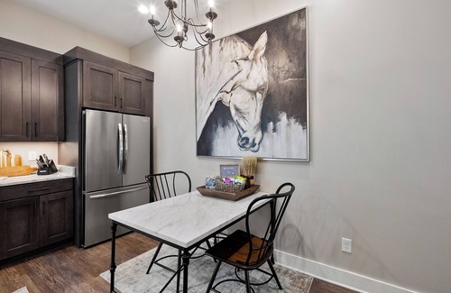 YOUR BLUEGRASS GETAWAY IS HERE! This modern & luxurious 1 Bedroom, 1 Bath private carriage house is a dream! (Sleeps 2-3) The open ambiance, high ceilings, natural lighting and elegant features provide you with the vacation magic you desire. Come here to relax and enjoy all the charm Central Kentucky has to offer. Surrounded by horse farms, the Carriage House is only minutes from The Kentucky Horse Park, Keeneland, Fasig-Tipton, downtown Lexington, UK, Red Mile, Rupp Arena, renowned dining, shopping and more! Styling throughout the home is clean, modern and minimal. The interior is equipped with everything you would expect from a 5-star family home. Here, an eclectic mix of comfortable furnishings invites you to a cozy evening of family games, or a nice nap after a great day exploring Central Kentucky, enjoying a day at the Keeneland racetrack, working a day at the horse sales at Fasig-Tipton or Keeneland, or visiting our many world renowned bourbon distilleries and local wineries. We provide two flat screen TVs, WiFi, high ceilings with exposed wood beams, central A/C and heating, Tempur-Sealy King bed, queen sofa bed, privately fenced/gated yard, Kuerig & Nespresso coffee machines, full size washer and dryer, all the essential dining ware, linens, towels, etc., gourmet kitchen with marble countertops, stainless appliances and bar with seating, full bathroom with tiled shower. If you have a particular requirement, please be sure to tell us and we will be happy to try to accommodate! We want your trip to the Bluegrass to be special! License number 15081686-1.