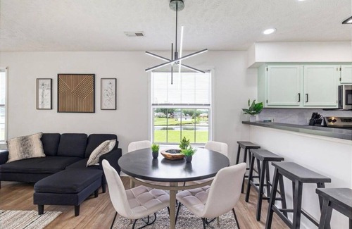 Inside, you’ll find a thoughtfully curated space with modern touches and all-new furnishings. The open-concept layout includes a comfortable living area with a smart TV and high-speed Wi-Fi — perfect for relaxing after a day of exploring. The fully stocked kitchen offers brand new appliances, plenty of counter space, and all the essentials for cooking meals at home. Enjoy your food at the cozy dining table or out on the balcony overlooking the course.