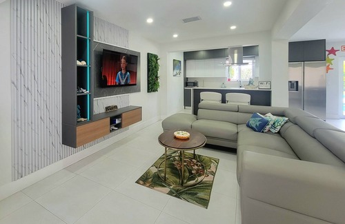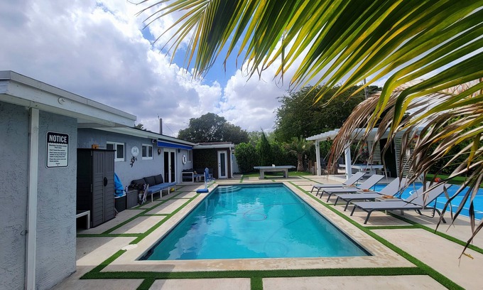 Perfect place to stay with friends and family, walking distance from hard rock hotel and casino in Hollywood, 9 miles from Fort Lauderdale airport . House is 9 miles from Hollywood beach, 25 miles from south beach ,sawgrass mall 13 miles, House has netflix , tesla charger , is close to all major highways and conveniently located. Has a brand new pool heater and saltwater system beautiful Patio with basketball court , pin pom table , and pool table will further enhance the experience of staying at this warm and inviting place. PS5 with five games.