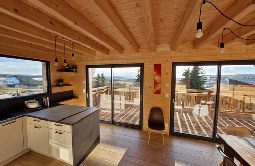 This recently renovated and very spacious chalet (150m² for 14 people) is located at the entrance to the resort, 15 minutes from the village center, and boasts breathtaking views of the Sancy and Cantal mountains. You'll be charmed by its modernity and comfort. Each chalet has beautiful living spaces to accommodate a whole family or a group of friends. Enjoy the sun-drenched south-facing terraces to recharge your batteries during your stay. This chalet can accommodate guests with reduced mobility.