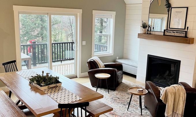 Cozy Ambiance: for winter nights, step into our living/dining room adorned with cathedral ceilings and bask in the warmth of a gas fireplace. We've got plenty of board games and toys for the kids ensuring you enjoy a cozy atmosphere with friends and family for relaxation and shared moments.