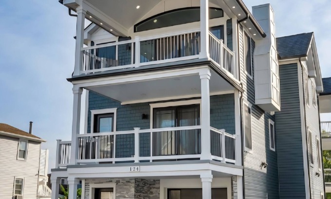 Large, luxurious home in Wildwood Crest less than a block from the bay. Five BRs, 4.5 baths and 4 balconies. Great spot for a large group.
