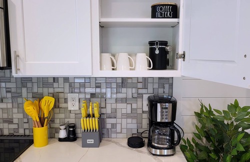 800 Mbps internet is perfect for remote work. 1 free parking space available on the front side of the unit. Also available are toiletries for shorter stays, smart TV, washer/dryer, towels, linens, basic utensils for kitchen. If you need anything else, feel free to message. I will see if we can work it out. Note that this unit is around 850 sq ft.