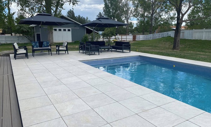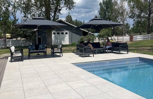 Make yourself at home in this 4-bedroom retreat in Boulder. This modern farm house features 1 king bed and 3 queen beds, along with 3 bathrooms. Oversized 20 x 30 pool, outdoor sitting area, 2 umbrellas and 4 lounge chairs makes this house a perfect private oasis for your stay in Boulder. Two minute walk to walking/biking trail, 10 minute drive to CU campus, 15 minutes to Pearl street and downtown Boulder. Chef's professional kitchen welcomes you with all the cooking amenities you will need to enjoy cooking a meal. Two Thermador Ovens, oversized refrigerator/freezer, wine fridge, toaster oven. The back yard also has a Treager Smoker and Grill. Unwind by the firepit and enjoy an evening under the stars!