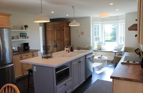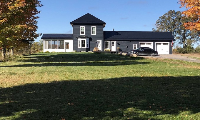 Beautifully renovated, modern farmhouse bathed in natural light; surrounded by picturesque farm fields.
