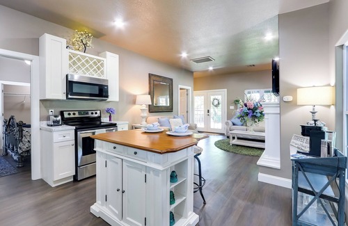 Mix historic charm with contemporary conveniences at this Belle Plaine, KS, vacation rental. This 2-bed, 1-bath home, built in 1886, has been completely remodeled to feature updated interiors and stainless steel appliances while still preserving the farmhouse feel. There are plenty of ways to enjoy life on the prairie at this cozy getaway, whether you’re relaxing on the covered porch, taking in the Tulip Time festival at Bartlett Arboretum, or making a day trip to Wichita to explore the city.