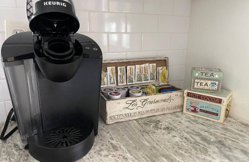 If you're looking for a quite peaceful stay, then our home is the perfect place. As you enter our home enjoy the warm feeling of ship lap decorated on the foyer walls with bright and cheery sunflowers in a milk pail vase.