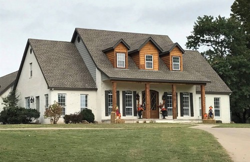 A beautiful, modern, farmhouse that sits on a 6-acre property. Located near Tulsa, OK this exquisite home is only a 15-minute drive to malls, restaurants, and more. With an open floor plan, gourmet kitchen, and huge living space with plenty of natural sunlight, this property makes the perfect getaway with family, friends, or events. Enjoy being in nature with plenty of space to roam, relax by the enormous pool in the backyard, or enjoy a cookout with friends. We would love for you to come!