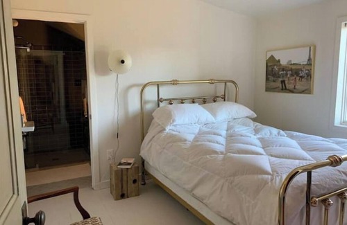 The bedrooms are located on the second level. The main bedroom has a queen bed, ensuite bathroom, wardrobe and desk. The second bedroom has a built-in bunk bed with full size lower bed and twin above. This bedroom also has desk and wardrobe. Both down and down-alternate bedding are provided. Each bedroom has a desk for remote working. We also have a fold down/futon sofa on the first floor. If you would like to use for an additional guest please indicate in your reservation.