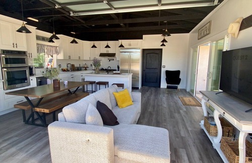 Brand new modern farmhouse, with views to the farm and mountain . Space offers seclusion and comfort. Decorated beautifully . Lots of outdoor areas to enjoy the fresh breezes. Hammock under the orange trees or walk to the horse corrals and be fascinated ( no riding horses or entry into corrals).