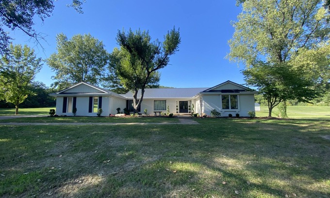 Welcome to the Modern Farmhouse with Glam Room and Bunk Room, a stunning retreat in the heart of Hermann, Missouri. This exquisite property is perfectly designed for wedding parties seeking an unforgettable experience. With ample space that accommodates up to twelve guests, you can host your bridal party or family in style while enjoying the comfort of a newly remodeled home that beautifully blends rustic charm with modern elegance. The spacious layout not only serves as a welcoming backdrop for pre-wedding festivities but also provides an ideal setting for relaxation after the celebrations.